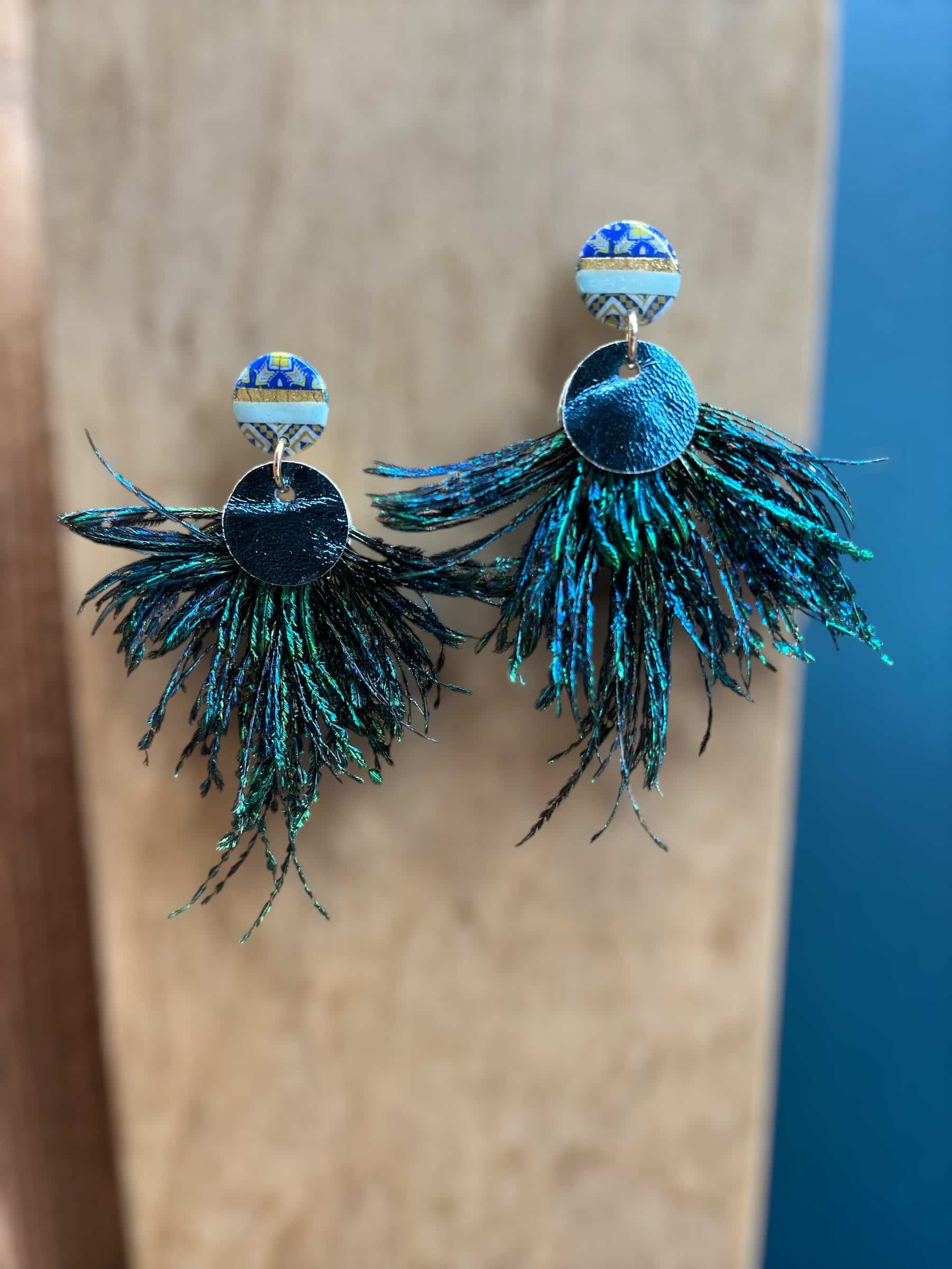 Ces boucles d’oreilles en plumes naturelles, sauront séduire par leur unicité.