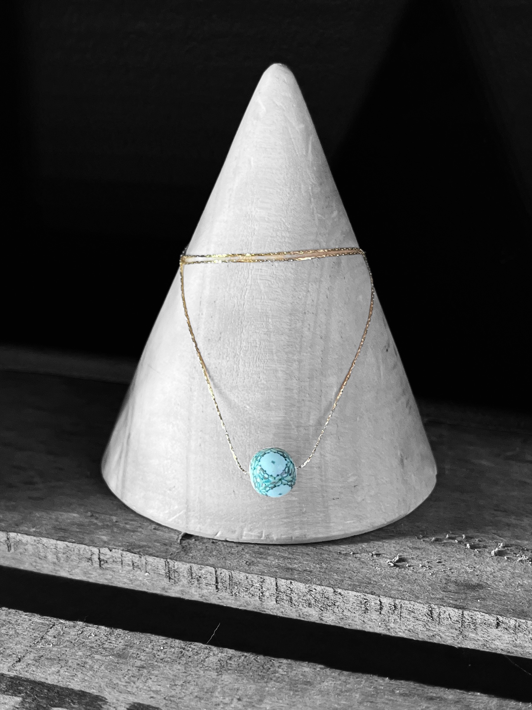 Collier doré chaîne fine perle verte